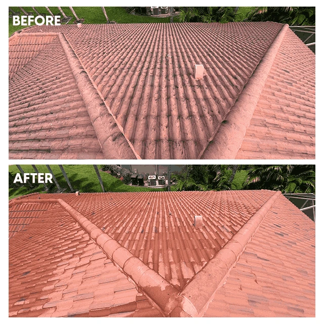 Our roof cleaning service keeps your roof clean and protected. We use soft wash roof cleaning to remove algae, moss, and dark stains. This method is safer than roof power washing and helps your roof last longer. We never use harsh pressure that can cause damage. Our Palm Beach roof cleaners serve all of South Florida with fast, affordable, and professional care. Whether you need a full wash or a light touch-up, we’re here to help. Trust our roof soft wash experts for safe, lasting results. We make sure every home roof cleaning is done the right way.
